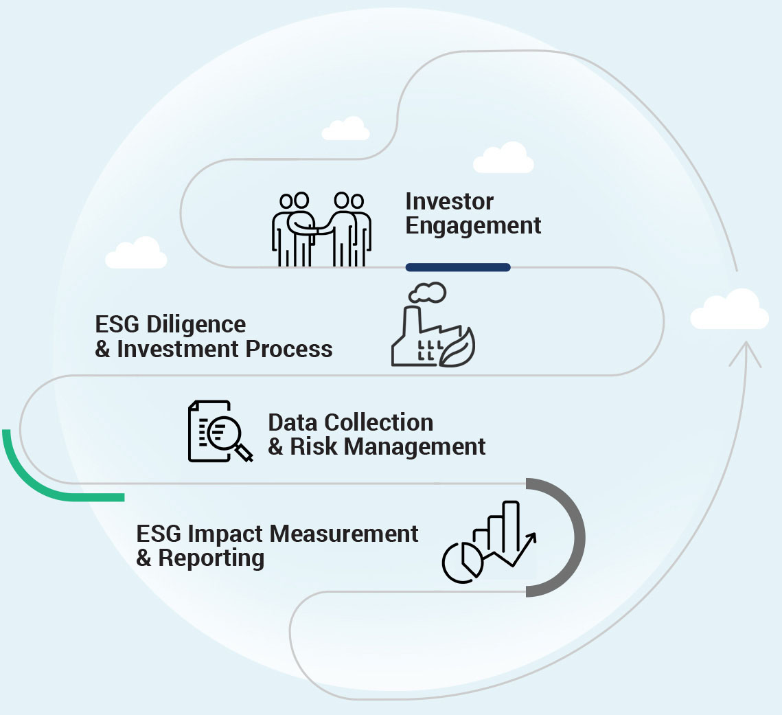 Our approach is cyclical in nature, dominated by the continuous feedback of our clients and portfolio companies. As we collect more information from our portfolio companies pertaining to their ESG performance, we work to critically analyze how these factors are distributed across our funds and shift over time.